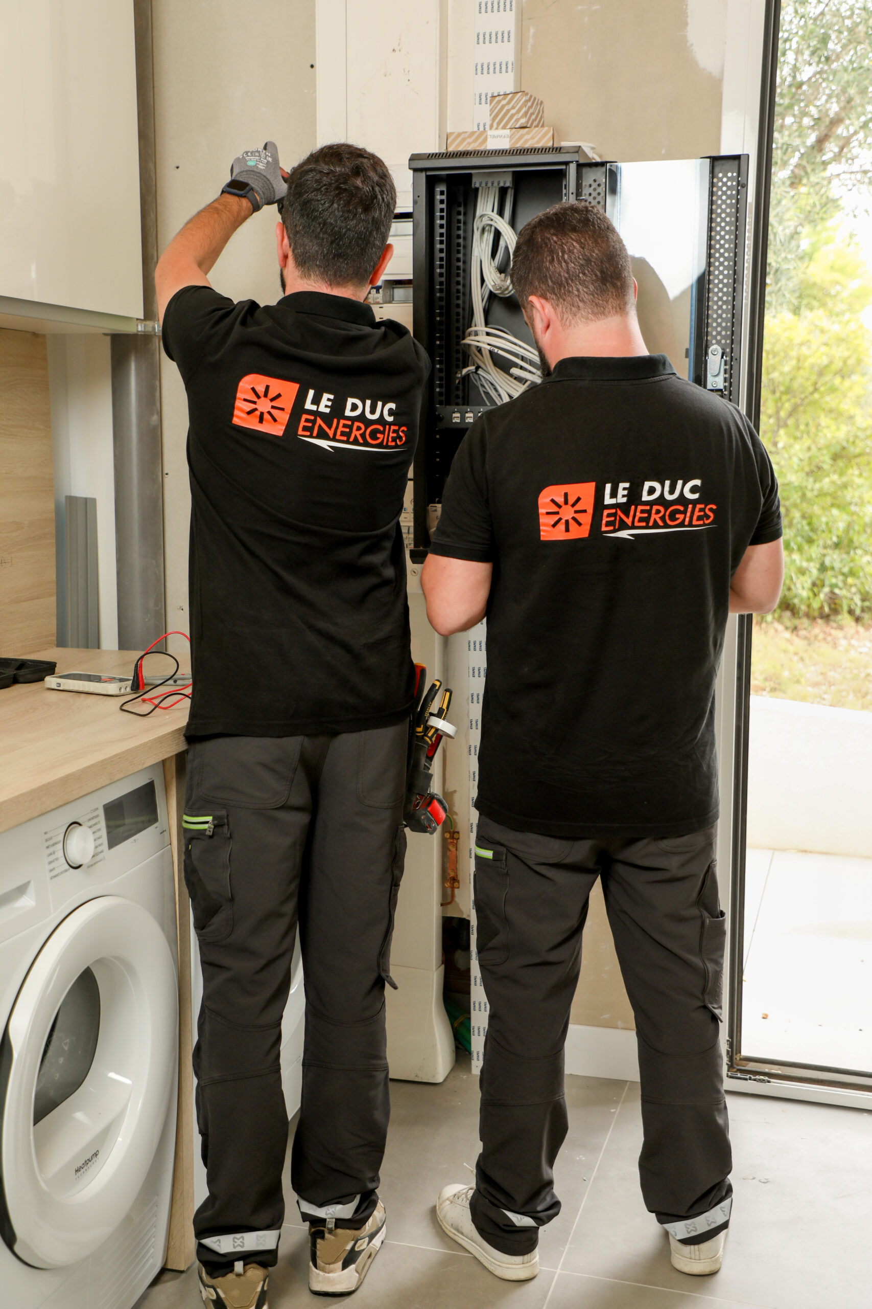 Chez LE DUC ÉNERGIES, électriciens à Narbonne et alentours, Raphaël, Maxime et leur équipe accompagnent particuliers et professionnels sur tous leurs travaux électriques : urgences, chantiers neufs, rénovation, borne de recharge et domotique. Réactifs, qualifiés et habilités, ils interviennent avec sérieux et efficacité, dans le respect des normes.
